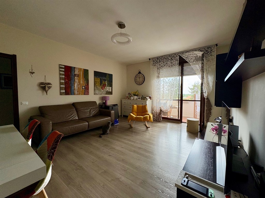 L’appartamento è composto da un spazioso soggiorno, una cucina abitabile di dimensioni generose, perfetta per accogliere una zona pranzo conviviale, e un disimpegno che conduce alla zona notte, dove troviamo due camere da letto ampie e molto accoglienti. Il bagno principale, finestrato, è dotato di vasca, mentre il secondo bagno, anch'esso finestrato, è provvisto di doccia.
